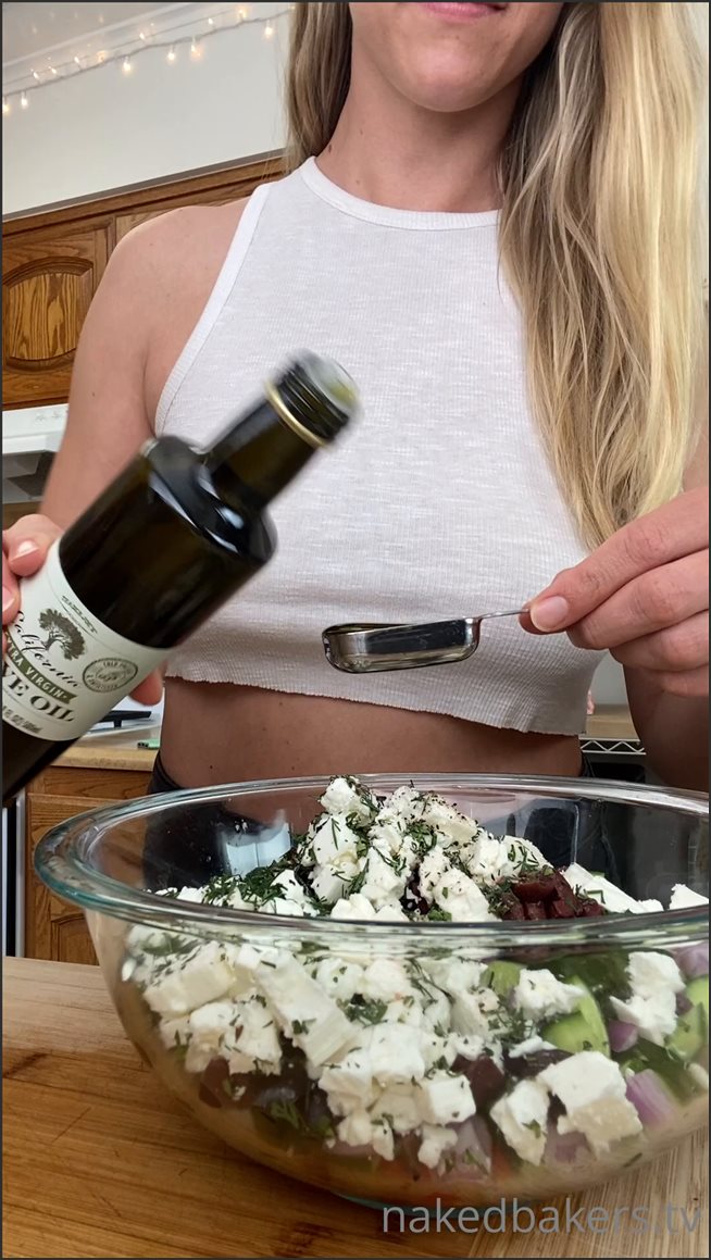 MEGA-FANS – nakedbakers-22-03-2021-First recipe of the day done Greek Salad. There is a little onion in it and thats not ideal for keto but overall this is a great salad to have in the frid