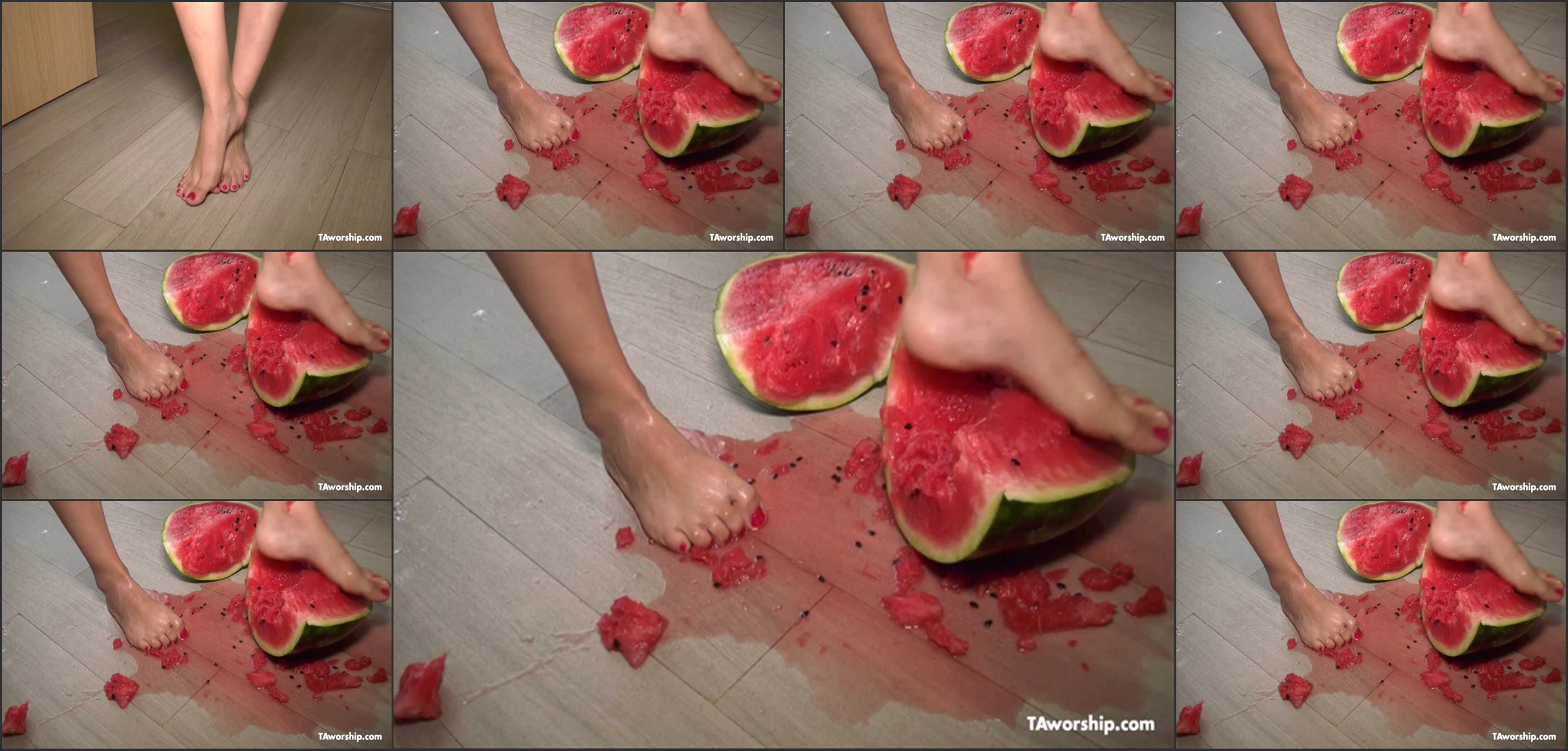 Taworship.com- Amber crushes a watermelon